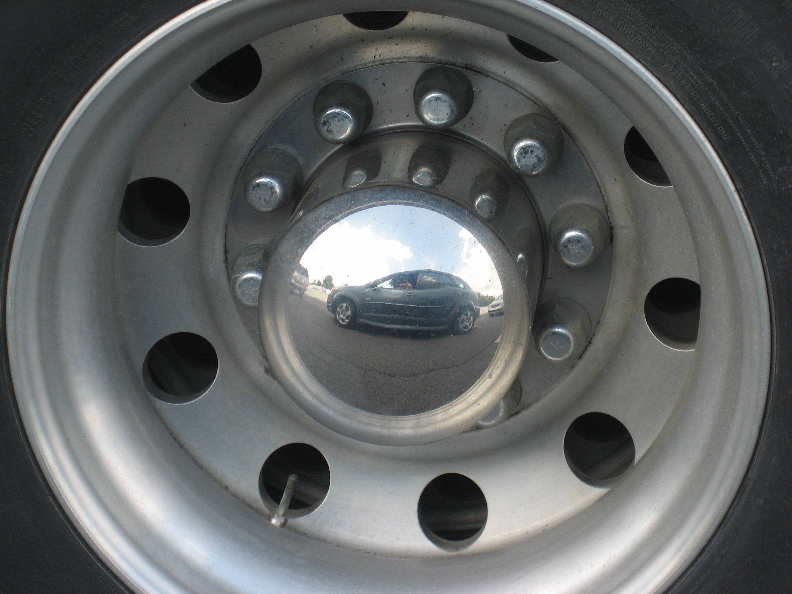 Comments on This hubcap was on a car next to us stopped on I-65. That's our car in the reflection!